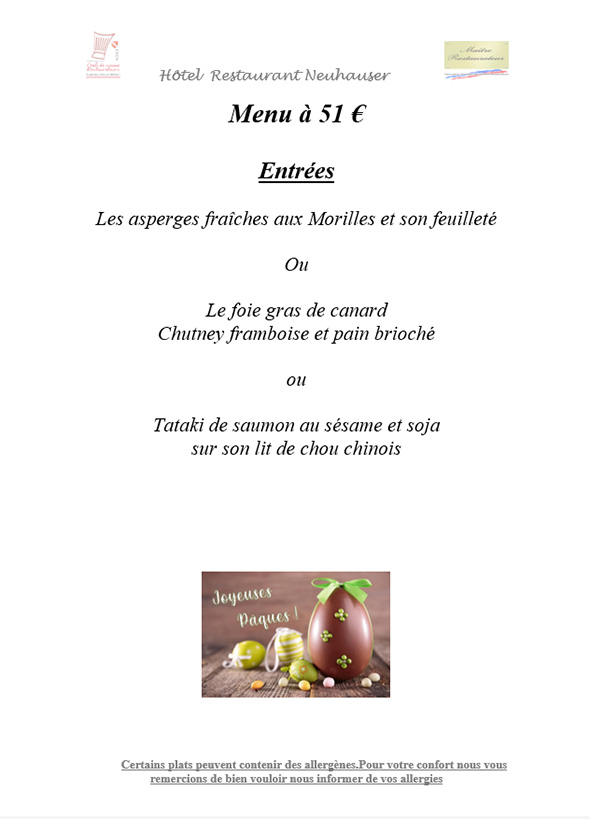 L'Hôtel-Restaurant Neuhauser ne garantit pas que ce site soit exempt de défaut, d'erreur ou d'omission. L'information qui y est contenue est destinée à vous apporter des indications générales et les mieux actualisées possibles sur les sujets traités. L'Hôtel-Restaurant Neuhauser ne saurait en aucun cas être tenue responsable des éventuels défauts, erreurs ou omissions existant dans ce site, ni de l'utilisation et de l'interprétation de l'information qu'il contient.